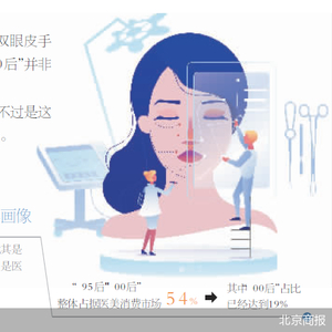 容貌焦虑,最容易看到、最容易评估,或许也最容易改变。在进入大学前,“00后”小雨用父母给的5000元做了埋线双眼皮手术,提起这次手术,小雨似乎并不满足,“我们班还有同学做隆鼻、打玻尿酸呢”。像小雨这样趁着暑期进行医美项目的“00后”并非个例,足够长的恢复期、各大民营医美机构给出的大学生折扣都进一步催热了暑期市场。