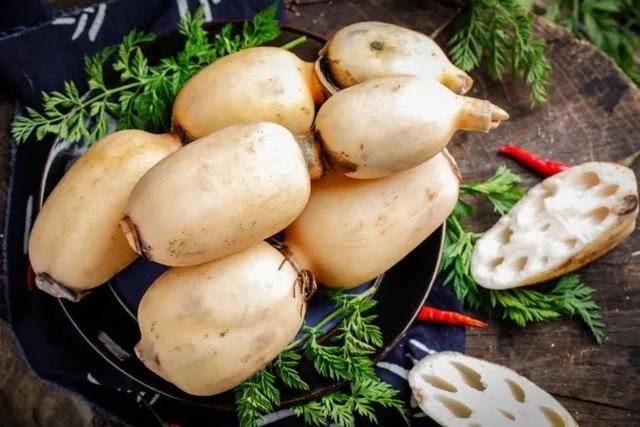 ⬤ 七孔藕外皮为褐黄色,短而粗,生吃味道有些苦涩。