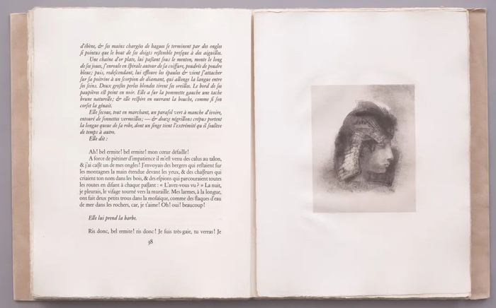 奥迪隆·雷东,“我的吻有果子的滋味,在你心里融化!……你对我不屑一顾,再见吧!”根据福楼拜小说《圣安东的诱惑》所作插画之一,1896