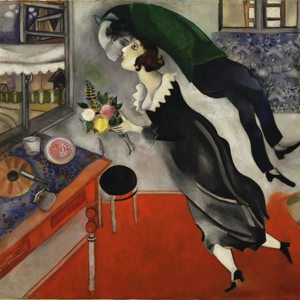 似乎一说到艺术史上的爱情模范,就必有马克·夏加尔的名字。他和贝拉的相遇是典型的“穷小子遇上富家女”,两人火速陷入爱河,夏加尔认定了她就是今生的唯一,而贝拉也待以温柔和坚强,支持他去巴黎寻求艺术发展,自己则在故乡等候。这段异地恋最后以团圆结局告终,夏加尔回到俄罗斯,于1915年和贝拉结婚。