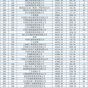 排名变化方面,相较去年上升最快的是鞍钢集团,跃升183位至第217位。分行业看,相较去年,上榜的互联网公司、医药企业排名均有所上升,汽车企业排名却大多下滑。