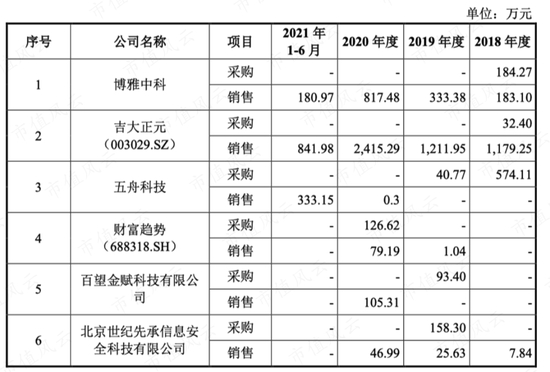 (1)2019年三未信安向吉大正元(003029.SZ)销售了1211.95万元,占当年公司总销售额的11.51%左右,而根据吉大正元的披露,2019年公司向三未信安采购了1342.87万元;