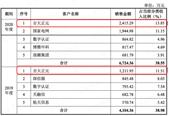(2)2020年向吉大正元销售了2415.29万元,占当年公司总销售额的11.85%左右,而根据吉大正元的披露,2019年最大的供应商采购金额也才2033万。