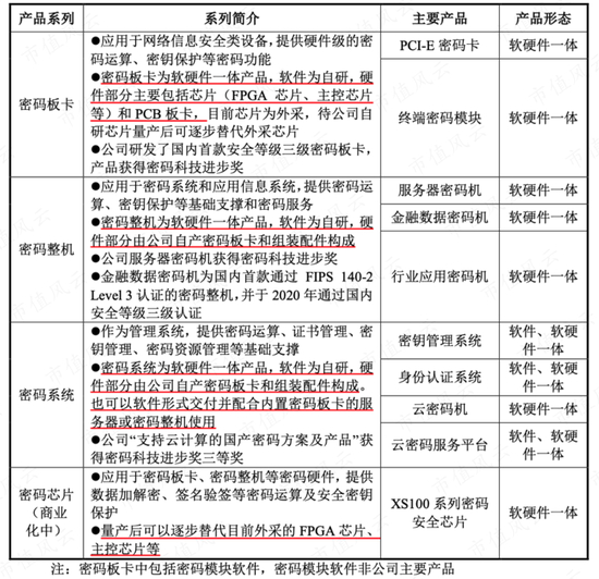 三未信安产品主要是密码板卡、密码整机和密码系统。