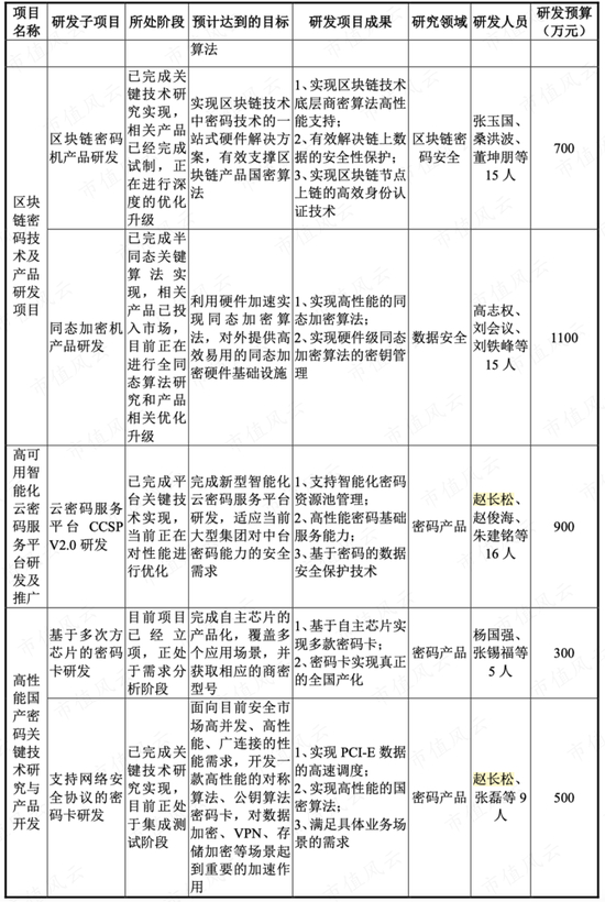 (1)最小最核心的是密码芯片,2020年12月三未信安第一款自研密码芯片XS100成功流片并完成封装,2021年10月通过国家密码管理局商用密码检测中心检测并取得产品认证证书,目前处于量产过程中;