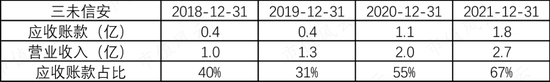 那么,三未信安的应收账款比例越来越高,会有突击确认收入的问题吗?