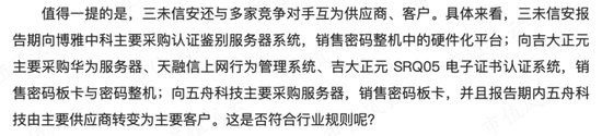而主要客户吉大正元、国家电网、数字认证、航天信息、天融信、深信服等等基本上都是行业内比较有名的集成商,不可能配合三未信安造假。