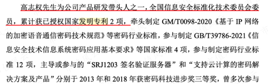 要知道三未信安有24项发明专利,每一项都是关键发明专利,赵长松只是其中一个发明专利的发明人。