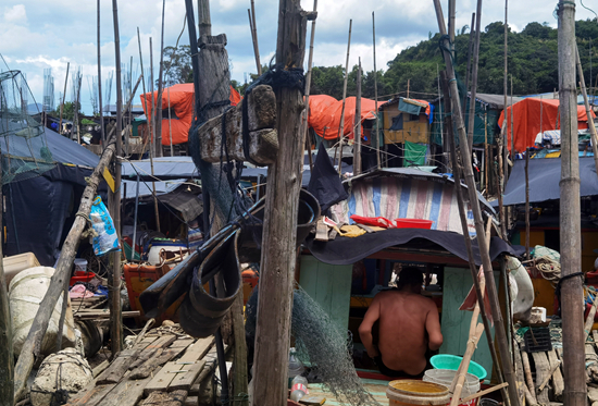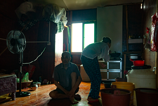 6月30日,福建省福安市下岐村,居住在滩头吊脚楼里的连家船民。连家船民常年在狭小的船舱劳作,年老后身体变形、各种疾病也慢慢凸显。