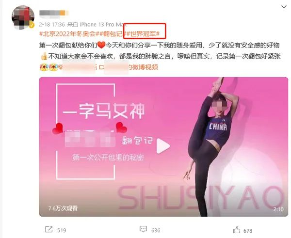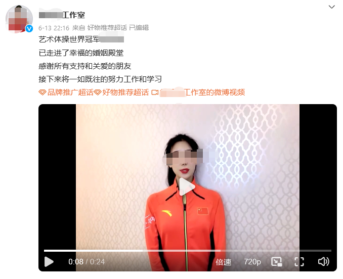 此外,这位前国家队队员曾于今年6月点赞了两则将其称为“艺术体操世界冠军”的商业合作内容。