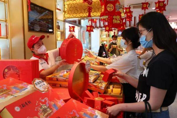 丹桂飘香八月近,又是一年中秋时。一年一度的中秋佳节在即,在北京稻香村的门店里,各种各样的月饼也已经陆续摆上了柜台,充满祝福的宫灯、简约大气的礼盒,无不流露出浓厚的节日氛围。