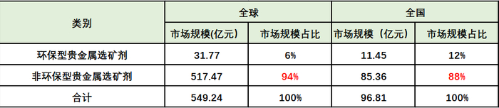 从这张表中,我们不难看出,非环保型贵金属选矿剂(主要是氰化钠)在市场中占据主要地位,全球占比达到94%,全国占比达到88%,这才是森合高科真正的竞争对手。