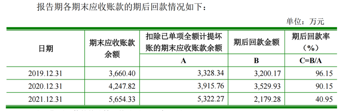 报告期内,随着营业收入的大幅增长,应收账款的期末余额自然也是大增。从2019年末的3139万元增长至2021年末的4982万元。而对比营业收入增幅97%,应收账款59%的增幅已经显得较为合理了。
