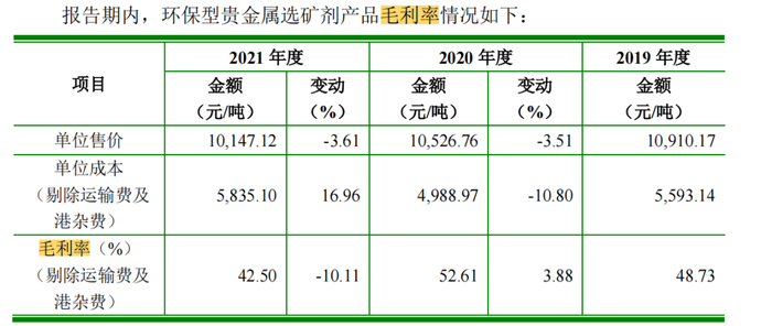 从招股书中我们可以看出,公司产品的主要优势就是环保属性,这和国家积极倡导的环保政策相符。可当我们看到2021年贵金属选矿剂的市场份额数据(见下表)后,却又对此产生了一些疑惑。