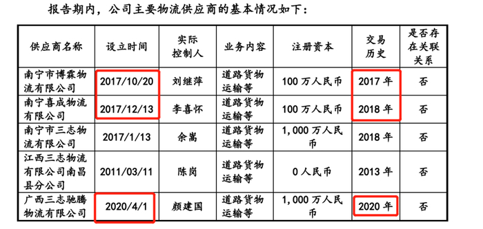 同样奇怪的是,公司的主要物流供应商也是刚成立不久便与公司开展业务合作的。