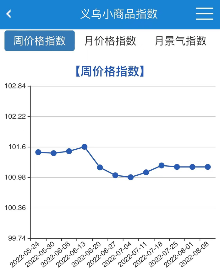 “8.2”疫情发生以来,义乌小商品价格指数受影响不大。(图片来源:义乌小商品指数)