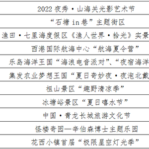 7月份,我市迎来传统的旅游旺季。随着疫情防控措施精准高效实施,以及政府一系列助企纾困政策在文旅行业落地生根,进一步稳定了经济运行,提振了市场信心,激发了企业活力,秦皇岛旅游市场热度进一步提升。夜游经济、文旅融合成为7月我市文旅市场的主旋律,全市旅游企业抢抓旺季窗口机遇,积极创新,瞄准市场需求推出新项目、开展新活动、增加新内涵,不断提升游客体验,培育了一批反响好、影响力大的创新产品,释放出高质量的文旅新活力。以下报名项目入选7月产品(旅游消费热点)榜单: