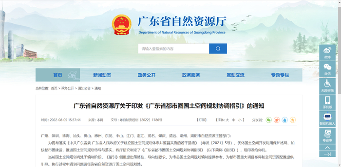 近日,广东省自然资源厅发布《广东省都市圈国土空间规划协调指引》(以下简称《指引》),以引导各地在关键领域通过深化合作实现优势互补,提升广东省国土空间规划效能和区域整体竞争力,全力推动建设世界一流都市圈。《指引》明确广州都市圈、深圳都市圈、珠西都市圈、汕潮揭都市圈、湛茂都市圈的规划范围,并为该五大都市圈空间布局、交通系统、产业构筑、公共设施服务等方面的发展指明方向。