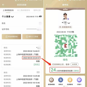 据上海市大数据中心介绍,根据国务院应对新型冠状病毒肺炎疫情联防联控机制综合组发布的《关于进一步推动新冠病毒核酸检测结果全国互认的通知》要求,即日起,上海市调整“随申码”“场所码”“数字哨兵”核酸检测有效时间计算规则,以核酸检测出具报告时间为准。