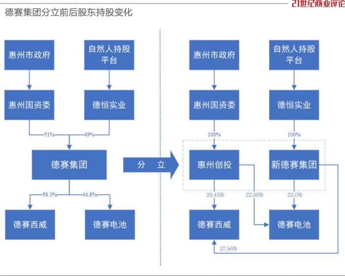 改制完成后,惠州国资委不再直接持有德赛集团股份,转而100%持股新公司“惠州创投”。德赛由姜捷为首的团队间接全资控股,他们与惠州国资各自拥有独立持股平台,互不干扰。