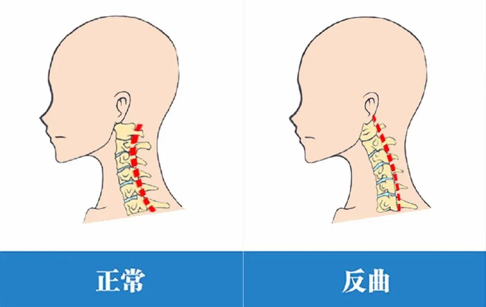 健康的颈椎是有一个前凸的生理曲线的,曲度变直、反弓都是不健康的表现!