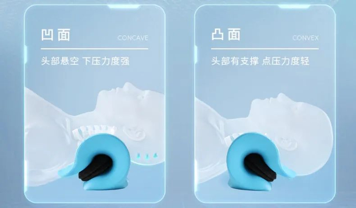 正向凸面:牵引偏弱 适用于颈椎保养和颈椎僵直程度较轻的人群。 头部会薄片支撑托住,整体力度较轻,适当放松僵直肌肉,缓解颈椎疼痛。 ![]()