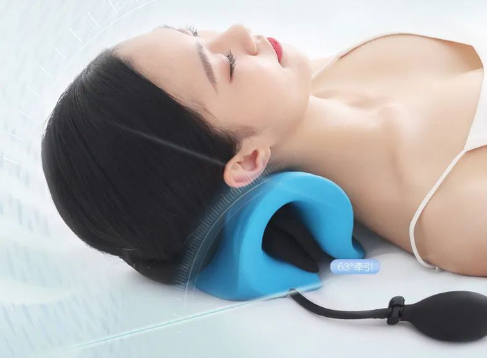躺上去后,头部自身重力会起到一个牵引拉伸的作用,拉扯回你僵硬变形的肌肉,你会感觉脖子好像卸下一块石头,紧绷的肌肉立马放松下来。