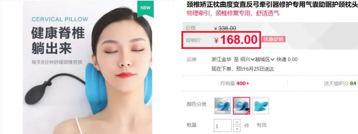 这款颈椎矫正枕气囊款,官方价格要168元/个。
