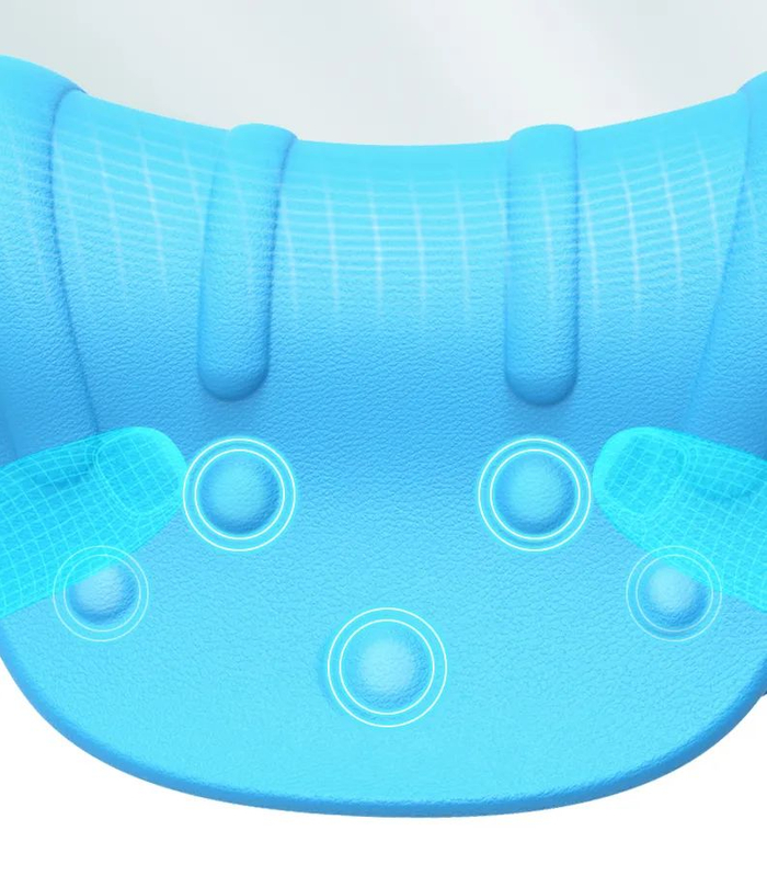 上面5颗点压颗粒,还能起到一定的按摩作用,如双手般按压颈部两侧肌肉及穴位。