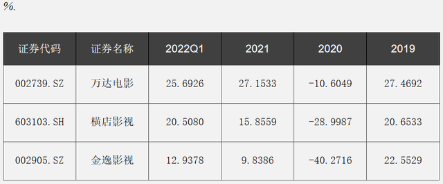 2021年,万达电影的毛利又变成了27%,差不多和2019年水平相当,2022年一季度下滑了两个百分点,变到了25%。