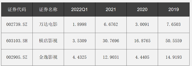 横店影视的周转率就很高,2019年差不多7天左右周转一次,金逸影视也很高,2019年差不多25天左右。2020年之后,因为疫情原因,周转变慢了。