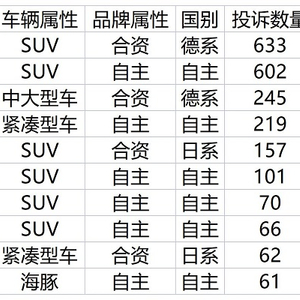 具体来看,7月质量投诉总数量上,宝马的投诉数量依旧领先,旗下的X3和5系依旧受困于烧机油和i-Drive系统减配问题;比亚迪则占据前十榜单里的三个席位,分别为宋Pro新能源、宋PLUS新能源和海豚车型。