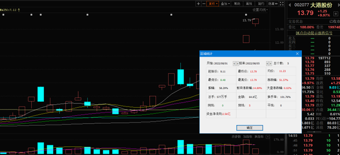 8月5日,大港股份涨9.97%,报13.79元。该股自8月1日以来,截至8月5日已连续5个交易日上涨,累计涨幅达51.37%,最近的4个交易日实现连续涨停。最新A股总市值达80.03亿元,A股流通市值78.20亿元。