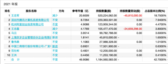 这些股份被腾讯全部拿下,腾讯也成为华谊兄弟第4大股东。排在前面的分别是王忠军、王忠磊、马云。