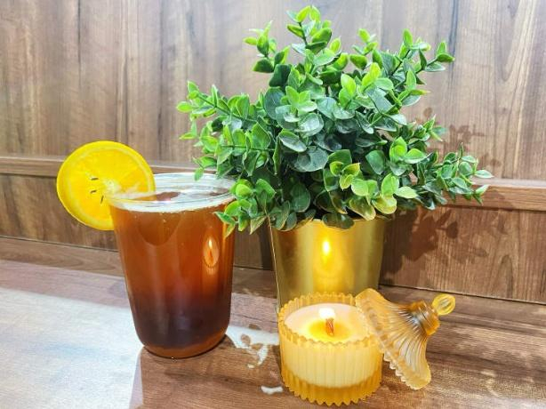 近期新华书店上新的“咖柚”甄选了阿拉比卡拼配豆做底,该款豆子为果香、奶油、白巧克力、太妃糖风味,浓郁顺滑 ,搭配蜂蜜柚子和进口气泡水,解渴提神,将甜蜜柚子与气泡黑咖完美融合。