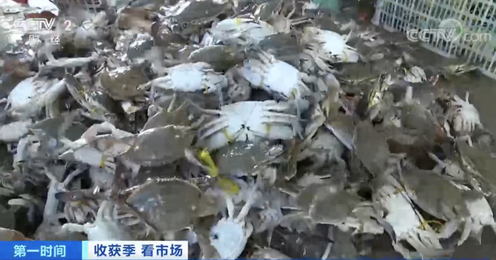 江苏连云港海鲜商户:春天螃蟹都是200元、300元一斤,现在100元3斤,螃蟹算是“大白菜价”了。