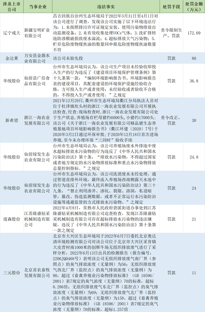 “A股绿色报告”项目收录的数据显示,近期上述公司也均受到环境处罚。