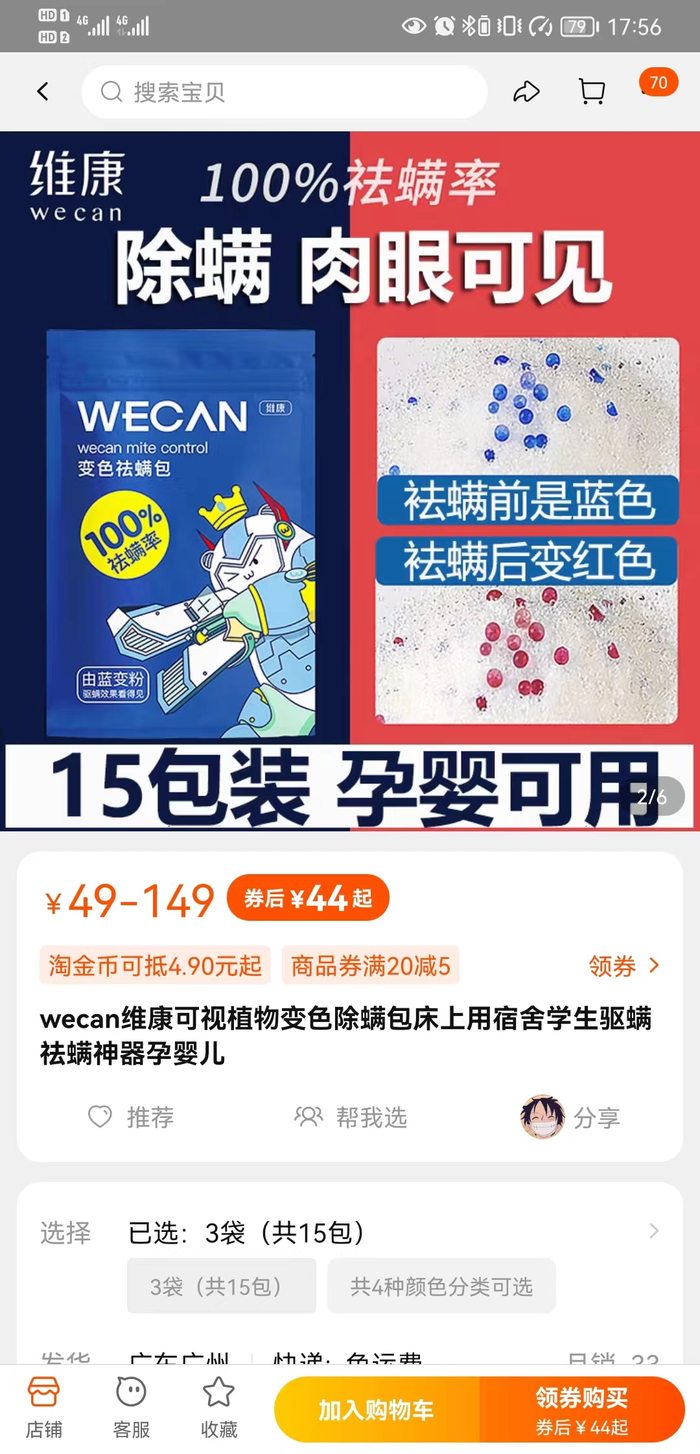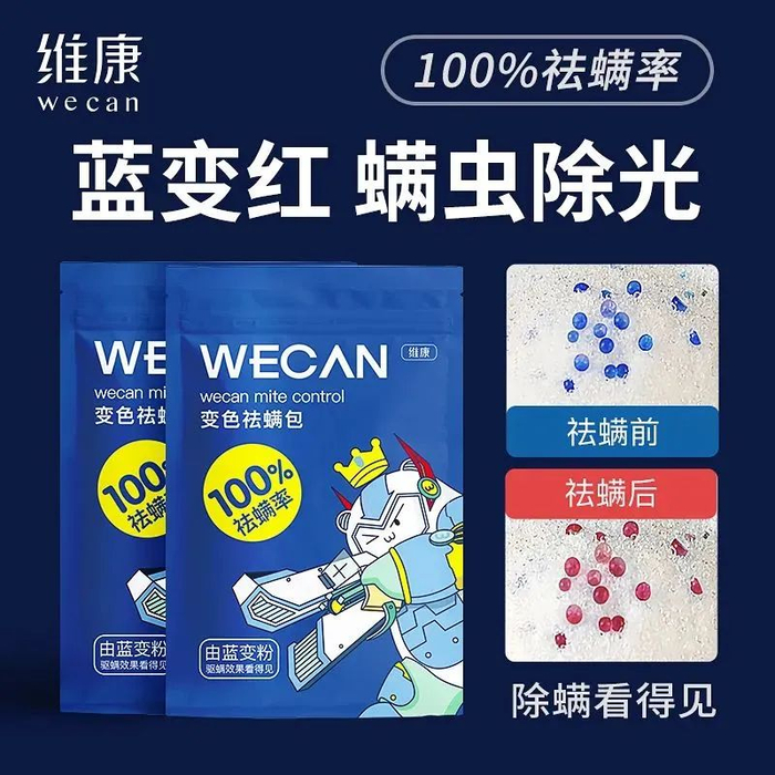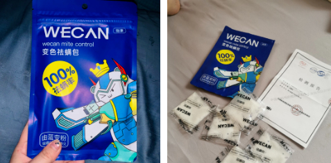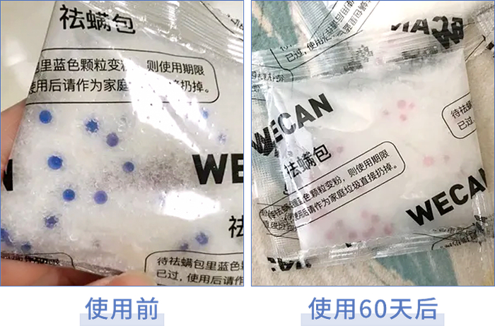 但维康除螨包会通过除螨变色,来判断是否已经除螨成功。
