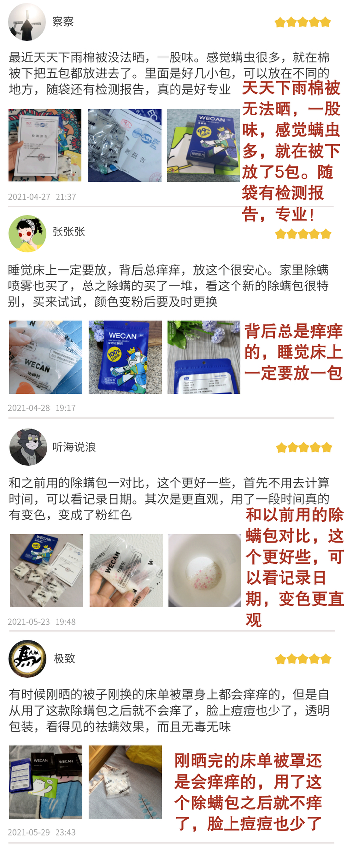 用过除螨包一段时间后,同事小林的脸也没那么痒了。