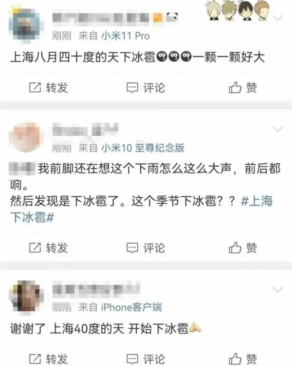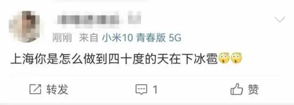 对于这突如其来的冰雹,许多上海网友的反应是“40℃还下冰雹”“这么热的天下冰雹”“八月下冰雹”?