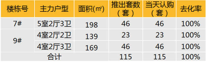 认购去化:本项目随二批次入市,7月13日首次开盘。开盘当天认购完毕。