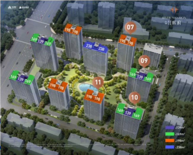 纯改善定位,项目户型面积以139㎡四房起步,其中169㎡以上户型占比达70%,最大户型为238㎡五房,吸引强改善需求客群。