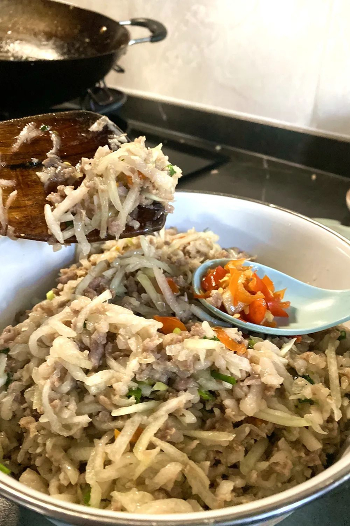 没错,这种馒头——在南方语境里等同于包子——夹满了诱人的笋干碎、萝卜丝和鲜肉碎,然后又不动声色地剁进了衢州的“龙游小辣椒”,以及一大把本土特产的辣椒面。等疏松带有酒香的馒头被塞得满满当当,上锅蒸熟,馅料里笋干的鲜香、萝卜丝的干香、猪肉的油润,连同锋锐无比的辣味渗透入面食之中。