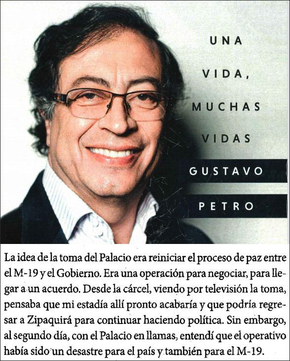 佩特罗在个人自传《Una vida, muchas vidas》(一种生活,多个生命)中回忆道:M19的男男女女给我留下的第一印象就是坚韧。人们对于斗争的热情让我惊讶,在这里,我无法再使用法律赋予我的名字,我是奥雷里亚诺,与他们一起参与战斗。