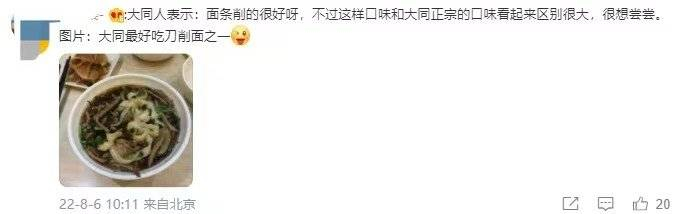 不过山西的网友表示:“面条削的很好呀,不过这样口味和大同正宗的口味看起来区别很大,很想尝尝。图片:大同最好吃刀削面之一。”