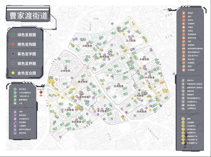 经过几年的探索实践,街道融合发展“生活圈、经济圈、数字圈、文化圈”,并根据居民的不同需求查缺补漏,整合了一批商业、养老、医疗、教育、文体等基本公共服务资源,比如,打造了中心城区面积最大、人气超高的街道邻里中心,为辖区内全龄段人群服务,成立4年来,共计接待超过80万余人次;梳理社区便民服务资源,绘制“充电地图”“服务阵地地图”“菜场地图”等“民生地图”,方便居民一刻钟内触达各项日常服务等,努力打造“宜居、宜业、宜学、宜商”的特色服务社区。