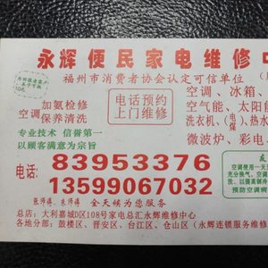 记者调查还发现,不止上述一家维修中心假冒消协诚信单位,还有一家“永辉便民家电维修中心”所发的小卡片上也写着“福州市消费者协会认定可信单位”,根本就是自我标榜,纯属虚假宣传。
