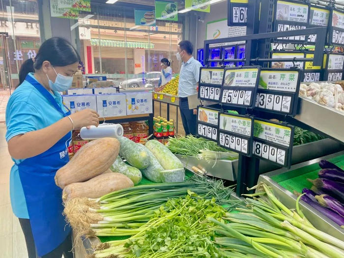 记者在各平价生鲜店及农贸市场看到,青菜、茄子、南瓜等蔬菜品种丰富,粮油区的米面、食用油等物资品种齐全,各类生活必需品供应充足。