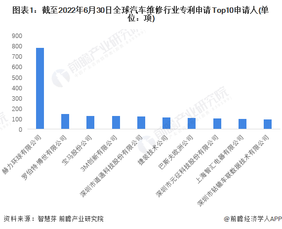 其中,赫力环球有限公司汽车维修专利申请数量最多,为782项。罗伯特·博世有限公司排名第二,其汽车维修专利申请数量为145项。