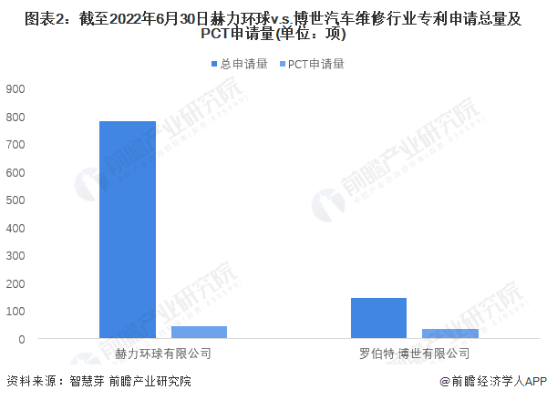 在汽车维修专利申请量方面,赫力环球的申请量是博世申请量的5倍以上。截至2022年6月30日,赫力环球汽车维修行业相关专利的申请量为783项,博世公司的申请量为146项。